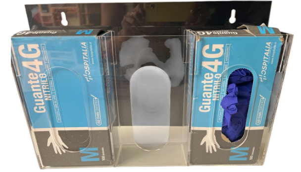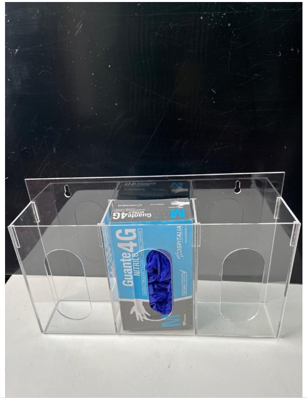 DISPENSADOR DE ACRÍLICO PARA CAJA DE GUANTES QUIRÚRGICOS, PECHERAS Y MASCARILLAS A.2.B.