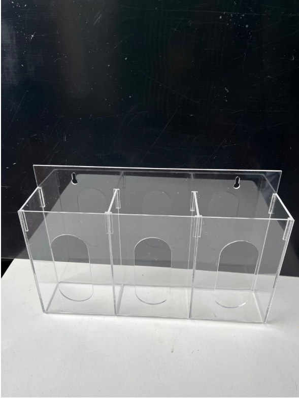 DISPENSADOR TRIPLE DE ACRILICO PARA CAJA DE GUANTES QUIRURGICOS
